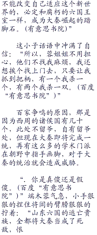 但是让将闾想不明白的是,一个女人,即便是能够得到天下,还想坐在王者宝座上不成。
