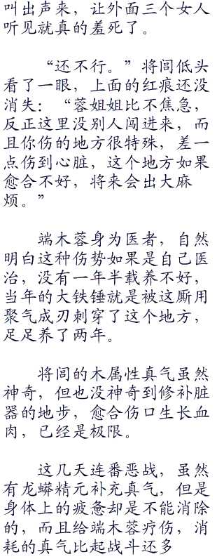 虽然是墨家医仙,江湖儿女,端木蓉的思想依然很保守,大丈夫三妻四妾可以接受,但是这种古怪的关系,却让她真心反感。