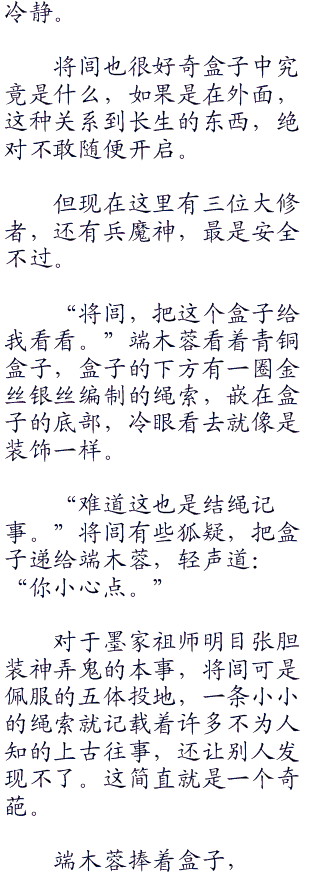 月儿将青铜盒子接在手中,美眸带着疑惑,仔细查看青铜盒子上密密麻麻的铭文。