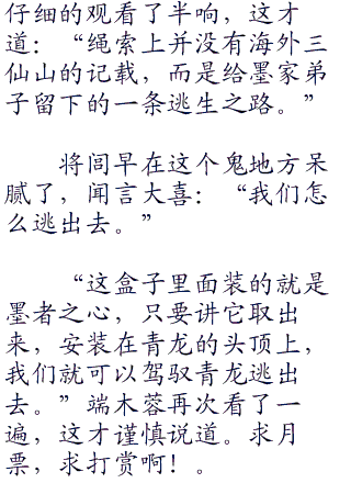 这只铜盒公主木偶一直抱在怀中,但是墨翟的机关术实在诡异,二女不认得上面的文字,也不敢轻易打开。