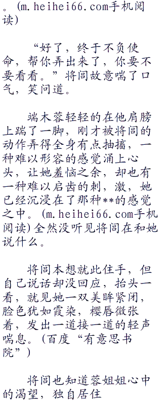 “还没。”这等美景如何能过错过,将闾仔细的查看蓉姐姐的每一丝美丽。