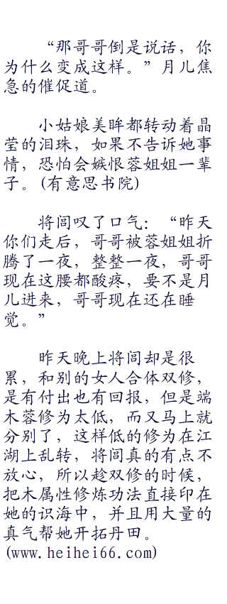 月儿摇晃着小脑袋,想不明白哥哥为什么会变成这样:“哥哥,我说话你在听吗!”
