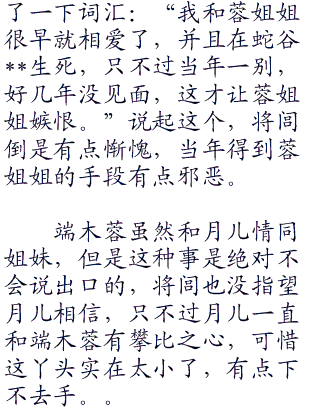看着将闾,月儿紧绷的小脸都露出一抹晕红,美丽的月牙眼也喷出怒火,哥哥对蓉姐姐这样好,蓉姐姐怎么可以这样。