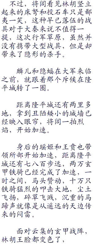 十日之后,随着四千轻甲斥候先一步闯入草原,将闾也率领玄甲飞骑从武阳大营出发,一日一夜之后就越过了燕长城,次日清晨大军吃了一顿热饭,两万三千玄甲就像是一片乌云,风驰电擎的向着襄平方向去了。