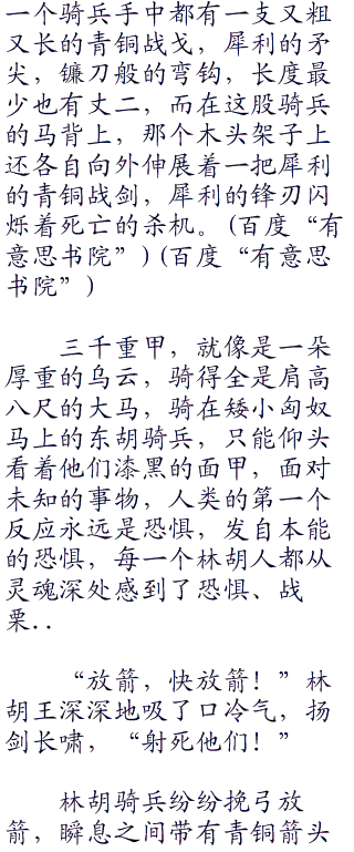 对面的林胡骑兵已经悍不畏死的冲了上来。