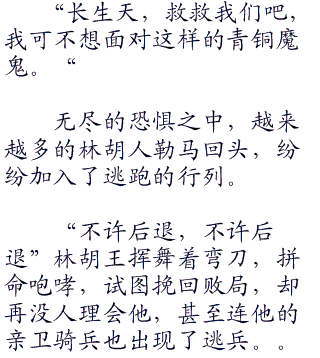 面对潮水一般涌来的玄甲铁骑,林胡王差点转身就跑,稳定了一下心神,惊恐的看着正在拼命搅动绞盘的东胡士兵大叫:“快点,在快点,他们已经攻过来了。”