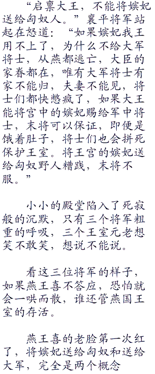 而现在,不管是驻扎在阴山的匈奴人,还是东胡,林胡,最多在边境打草谷,洗劫一番就急速撤退。就是因为中原的道路比起草原上的土地要坚,硬,快速奔驰让马蹄的角质层磨损掉,从而大量的减员。