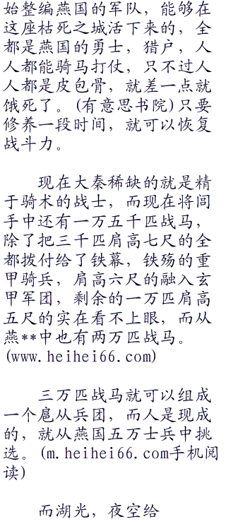 王贲开始指挥军队接受战利品,接受城池,而五万燕国大军确实是一群饿狼,看见马肉竟然抢了起来。