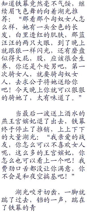 将闾进入襄平,马上鹰隼传书飞报咸阳,催促燕境的大军赶过来接受襄平,这里已经是草原的深处,对于将来和匈奴决战有重大的利用价值。