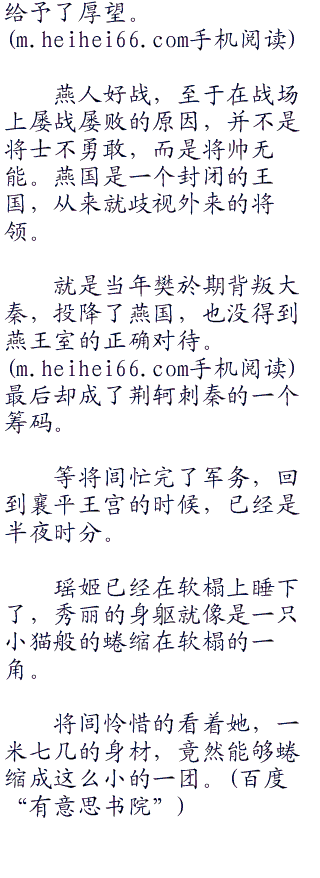 将闾住进了襄平王宫,整座小城就开始喧闹起来,一车车的粮草开始从武阳接力运送到襄平,跟随燕王喜在这个小城苦守了六年的黎民百姓和五万大军苍然涕下,终于不是没人要的孩子了。