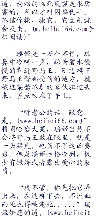 瑶姬惊讶的看着野马王,这就是是什么宝马,竟然还能坚持,野马王虽然也在喘着粗气,还不是打响鼻,但是它清澈的目光之中带着一丝不屈,还有一丝蔑视。