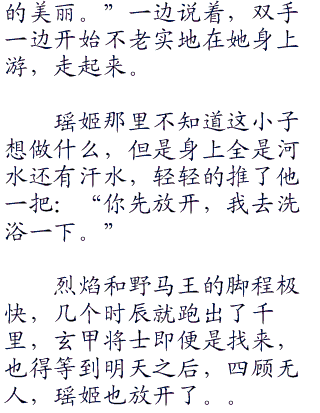 这匹宝马神骏不亚于烈焰,瑶姬总是抢将闾的坐骑,心中也有点不好意思。