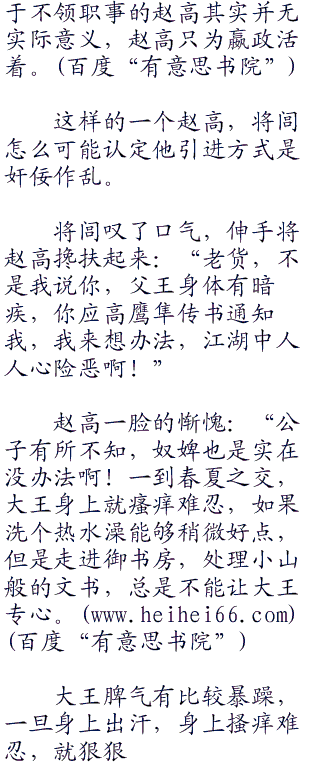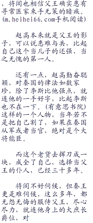 将闾也清楚,赵高身为中车府令熟读大秦律法,而且追随父王这么多年,对父王的身体,远远超过了专心国事的父王,赵高说他有暗疾,将闾也不用怀疑真假,