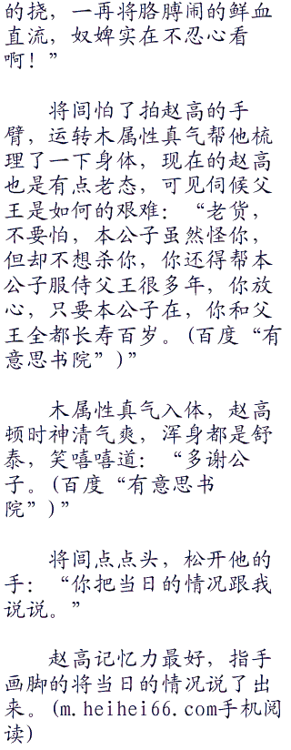 赵高低声道:“奴婢也知道不该聘请东海神医入宫,但是看着大王整日的劳心,瘙痒的不能睡眠,这才干冒大不韪,请了东海神医入宫。”