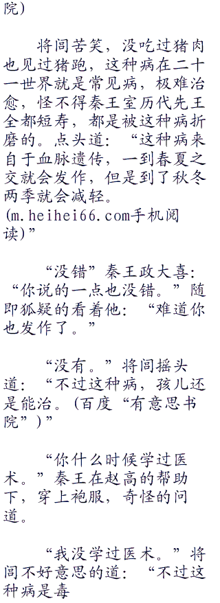 秦王政的脸色顿时阴沉下来,眼光如剑扫了赵高一眼,聘请东海神医看病,已经违背了祖制,没想到赵高竟然敢说给将闾听。