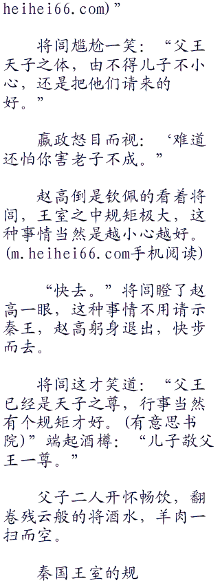 赵高会意的挥退宫女太监,亲自端起酒坛,给父子二人满上美酒。