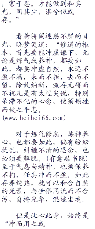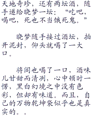 尽管心中很沮丧,尽管和晓梦的境界差的太远,但是将闾依然没放弃挣扎,没有放弃闯出去的想法。眼神带着一股好奇,一种审视却想不出任何的办法,扭头看着从山涧飘落,飞珠溅玉的瀑布一眼:“晓梦姐姐,为什么别的山水都是黑白二色,为什么唯独这条瀑布是青色。流动中还散发着青色的光芒。”