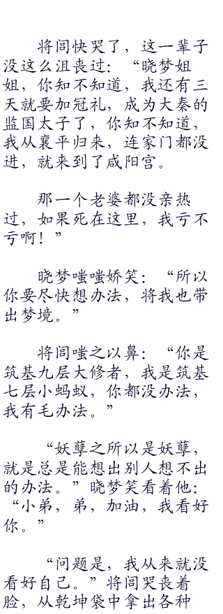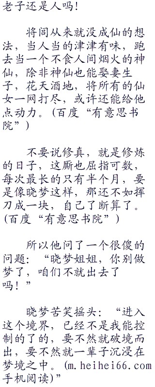 这是神一样的境界,这是神一样的手段,修炼到把自己都困在梦境之中出不去了,如果是将闾早就撒泡尿淹死自己了。