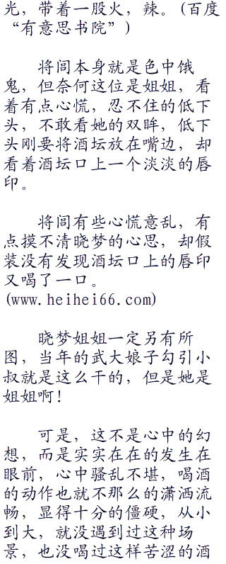晓梦娇嗔的瞪了他一眼,随手将酒坛递给他:“今天陪我一醉。”