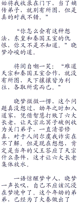 晓梦又是好气又是好笑:“不过是在黑白梦境中修炼几年,你至于这样吗!”