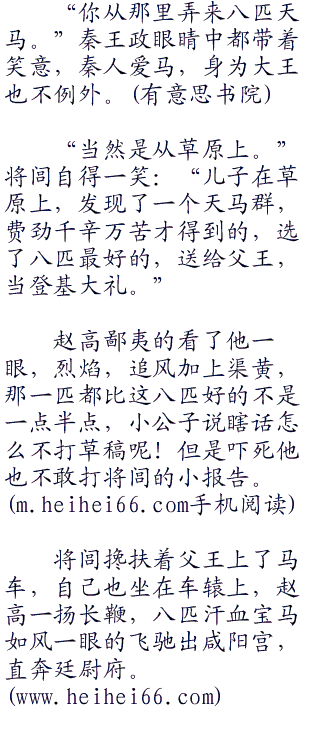 赵高嗤嗤暗笑,这位爷可不比秦王,完全是锦衣玉食的主儿,这是嫌弃秦王的饭食粗鄙。