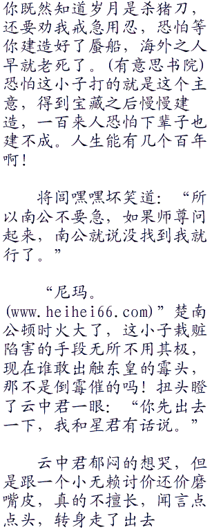可是如果我得到这笔宝藏,就可以修长城抵御匈奴,征伐羌胡收服南蛮,让天下所有的黎民百姓吃的饱穿的暖,从此不受奴役的苦。”