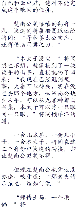 这句话将闾说的郑重无比,楚南公也明白了将闾的底线,大秦之所以现在还没和阴阳家翻脸,全靠这货压着。如果不然,凭借秦王政那种宁为玉碎不为瓦全的秉性,阴阳家必有大祸临头。