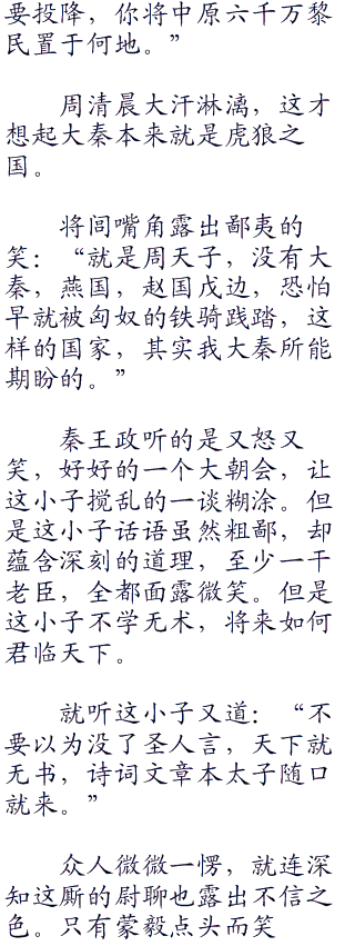 让一步海阔天空,只不过秦王能忍,这小子从来不忍,眼看着父王黯然归座,这厮笑嘻嘻的站起身来,向着嬴政一礼道:“启禀大王,儿臣有话要说。”