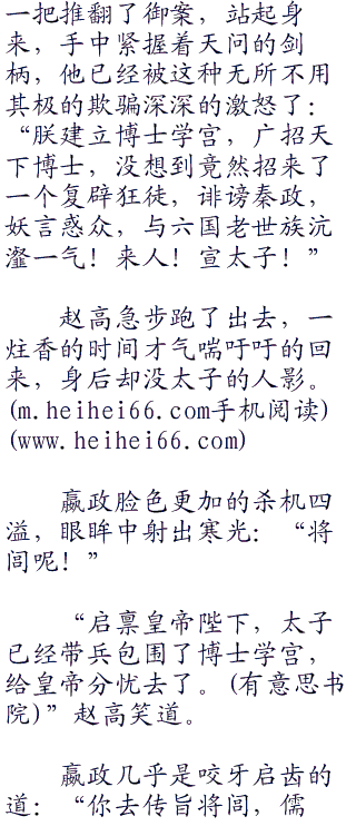 这些人商量的是在桑海以小圣贤庄为基础,建造一个秘密聚拢山东六国老氏族的营地,而卢生却化妆成博士,参加皇帝陛下的应招,力主促成皇帝陛下赐封小圣贤庄,让小圣贤庄脱离大秦律法之外,自成一国。”