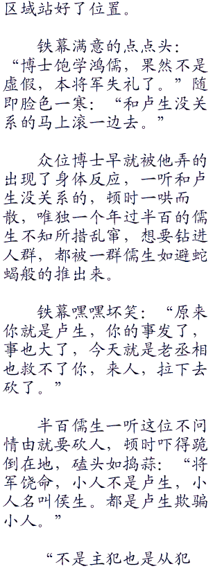王绾建立博士学宫的目的,就是改变大秦粗鄙的现状,弘扬文治教化,所以招收饱学之士区分并不明显,诸子百家兼收并蓄,但是方士肯定是其中的另类。现在看到铁幕铁殇并不是针对饱学鸿儒,也就站在一旁一言不发。