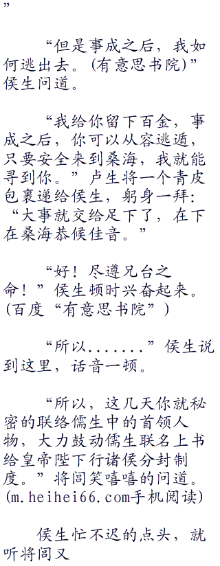 “那足下为何不亲自鼓动儒生。”侯生狐疑的问道。