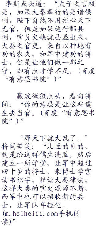 “但是天下人不读书,如何明白大秦的律法,而且大秦的疆土广大,远胜三朝,一旦停止战时管制,无人做官也是个腻歪。”将闾摇头道。
