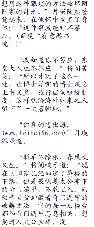 将闾说的恶战是什么,瑶姬很清楚,气的直咬牙,但也无可奈何,当日白凤送瑶姬和小黎回归楼兰,二女什么都说了,气苦道:“你怎么这样不小心。”
