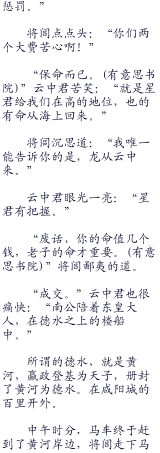 虽然一直在等待这一天,但是将闾还是想了无数遍,确定只有自己到了桑海,远离晓梦东皇才会出现,所以这厮才敢跟云中君在大街上乱逛。