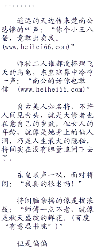 “你这个乌龟王八蛋,怎么不早说这是我师傅。”将闾一把攥住他刚刚长出半尺的山羊胡子,咬牙切齿一脸的悲愤倒打一耙:“我这样一个孝顺的徒弟,岂能对师尊这样无理。”