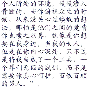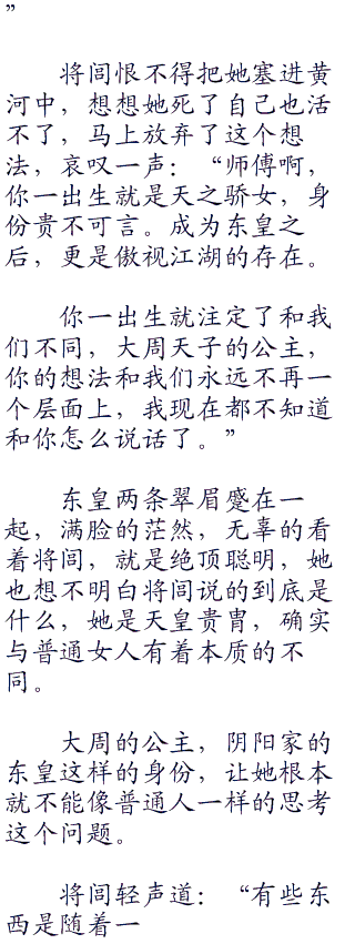 将闾轻轻的一声叹息:“原先努力往上爬,不遗余力的战斗,只不过是想掌控自己的命运,不想被人当成棋子一样的愚弄。可是,到现在才发现我依然是一颗棋子。”