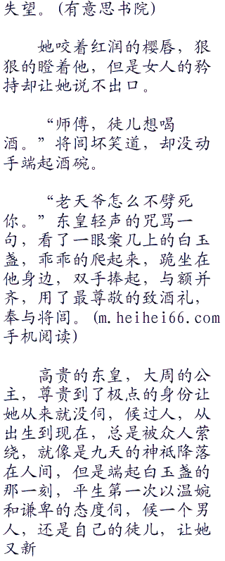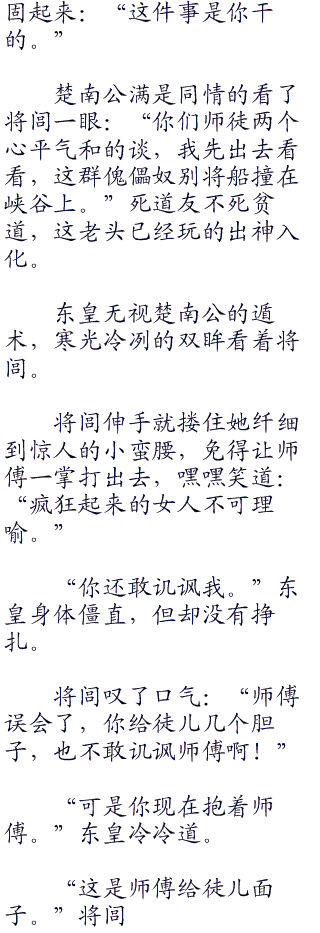 “喔!”将闾似笑非笑的看了她一眼,突然之间收回了坏手:“既然师傅不喜欢,那就算了。”
