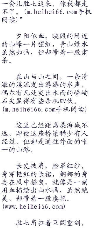 一只浑身漆黑的鹰隼,无视胜七发出的杀气,直接落在他的肩膀上,胜七微微一愣,随即从鹰隼的脚爪上取下一个青铜管,一张素帛上写了四个小字:“夕之木桥”