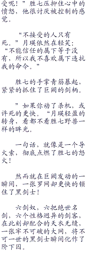 “你能和胜七打一架。”大铁锤的目光充满了狐疑:“除非你看见他就逃跑。”