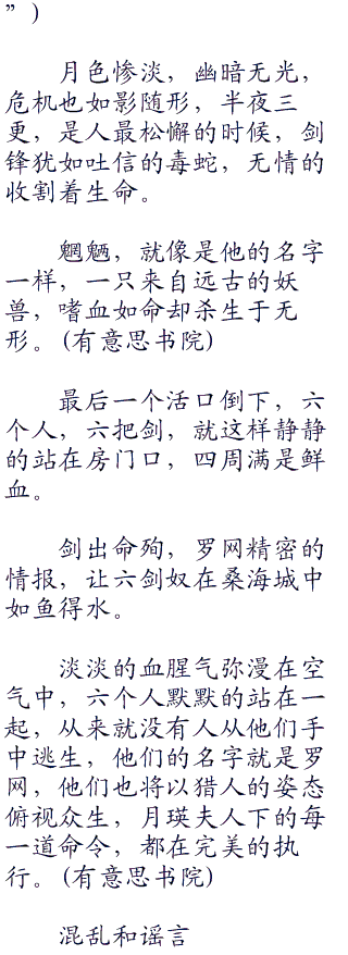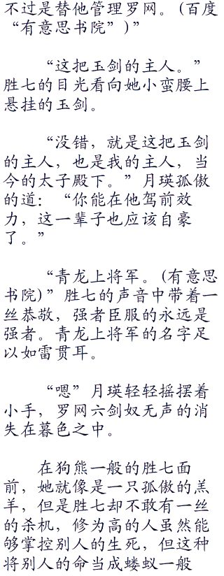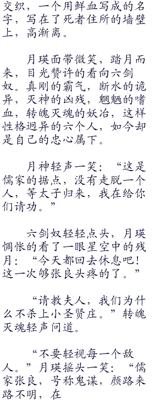 “听话。”月瑛轻声道:“只有听话的人才能在这个世上活下去,罗网是帝国的重器,我需要俯首听命的属下,而不是划破手指的利剑。”