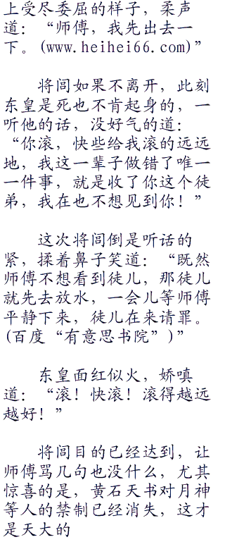 将闾现在越来越狐疑,不要说一个高贵的公主还是高傲的东皇,都不会让自己这样折辱,更何况她还是自己的师傅,这样的委屈是个女人都难以承受,但是她怎么没有发动黄石天书对自己的禁制。