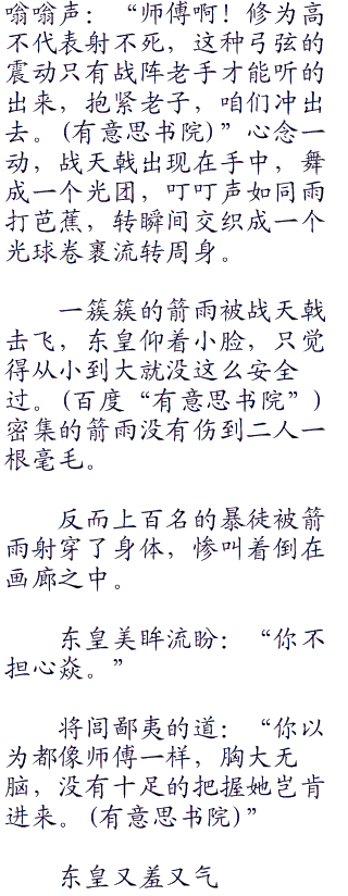 刹那之间,无数的弩箭从天空中降落,利箭破空之声嗖嗖的不绝于耳,就是筑基九层的高手,也不敢硬抗这种机括发射的弩箭。