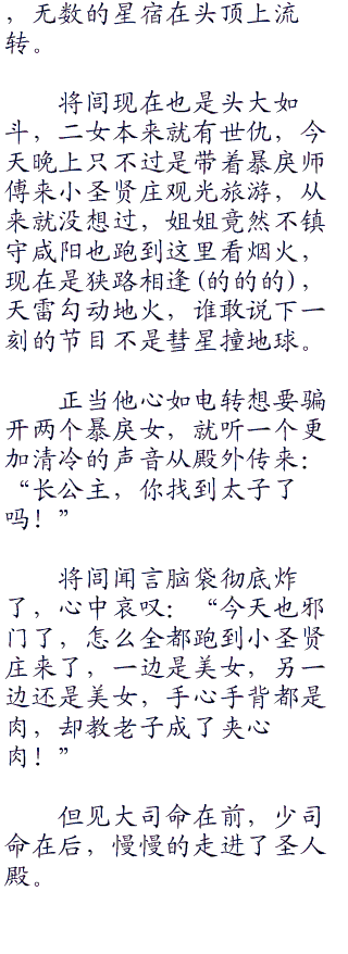 今天晚上小圣贤庄已经被欺辱的斯文扫地,就连桑海城中的街头混混也敢来趁火打劫,伏念还没来的及说话,颜路已经清啸一声,寒光神剑就向着东皇刺去。