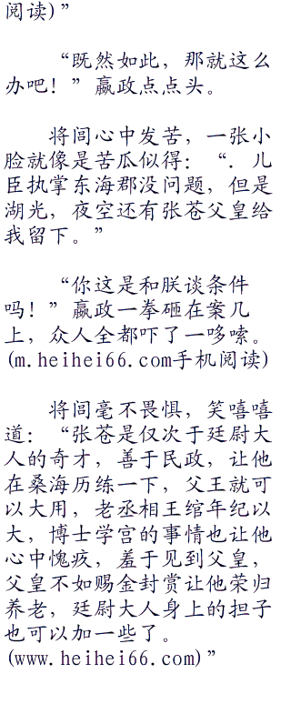 将闾笑嘻嘻的看着满头大汗的荀卿,站起身来先把他搀扶起来:“荀卿是李斯的老师,也是我大舅子的老师,说起来都不是外人。