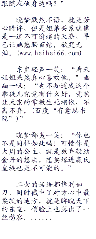 “胡说八道。”晓梦嘴硬道:“我怎么会和你一样不要面皮,我和弟弟一清二白,发乎于情止乎于礼。