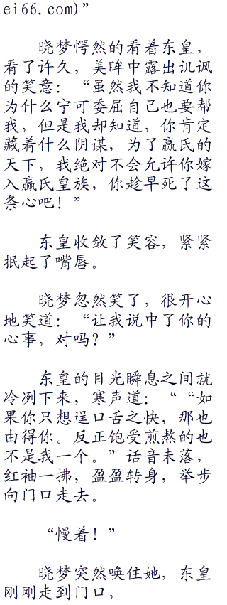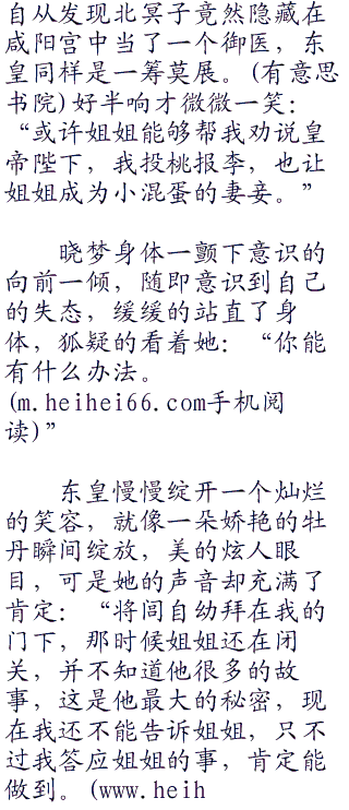 东皇缓缓扬起眉来,一双妩媚明亮的丹凤眼微微露出一股煞气,竟有一种惊人的美丽。她那丰润饱,满、娇艳如同花,瓣的小,嘴一张一合、一字一句地道:“姐姐不要骗我,无情境乃是死境,一颗心不是死灰复燃春暖花开绝对走不出来,天下男人千千万万,但是能走入姐姐心扉的天下恐怕只有一个。