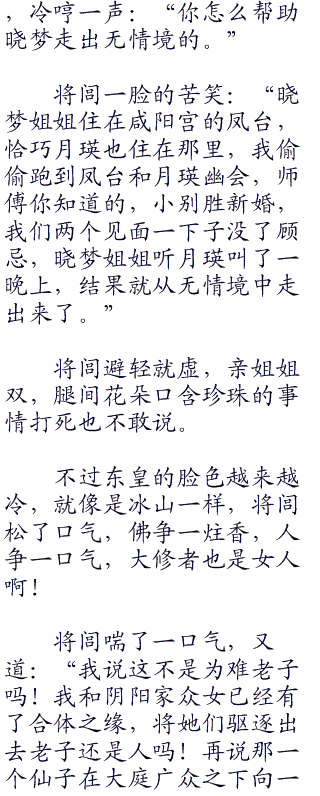 东皇一脸的寒霜心中酸苦道:“什么花开了不结果,在敢胡说八道信口开河,小心我拔了你的舌头。”