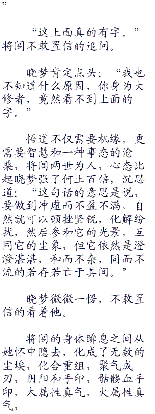 晓梦看了看他轻轻一声叹息:“道德真言深奥难测,想要彻底领悟需要很多年。”