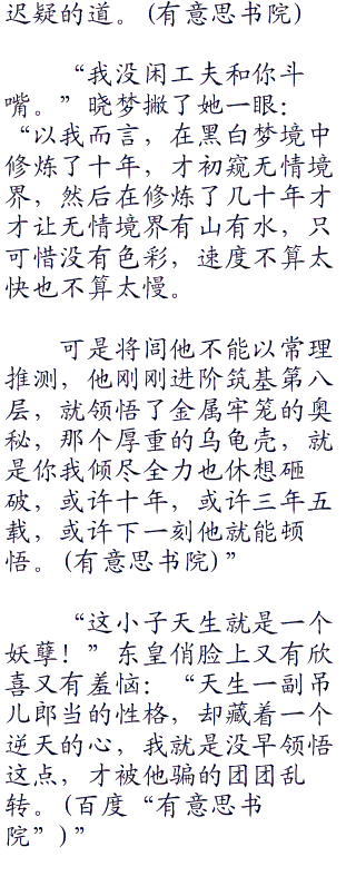 晓梦也是苦笑:“他走的路完全和我们不一样,天生注定比你我走的更远更宽,你这辈子收了这么个妖孽徒弟,死了也该偷着笑了。”