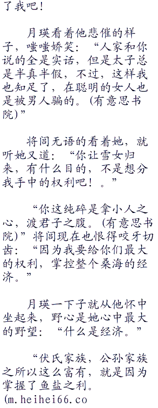 “呸”月瑛轻轻啐了一口:“我要是只有一个身子,纵然是容貌绝世,太子殿下也懒得搭理我,更别说费尽心机哄我骗我,你身边的女人,全都是精明能干之